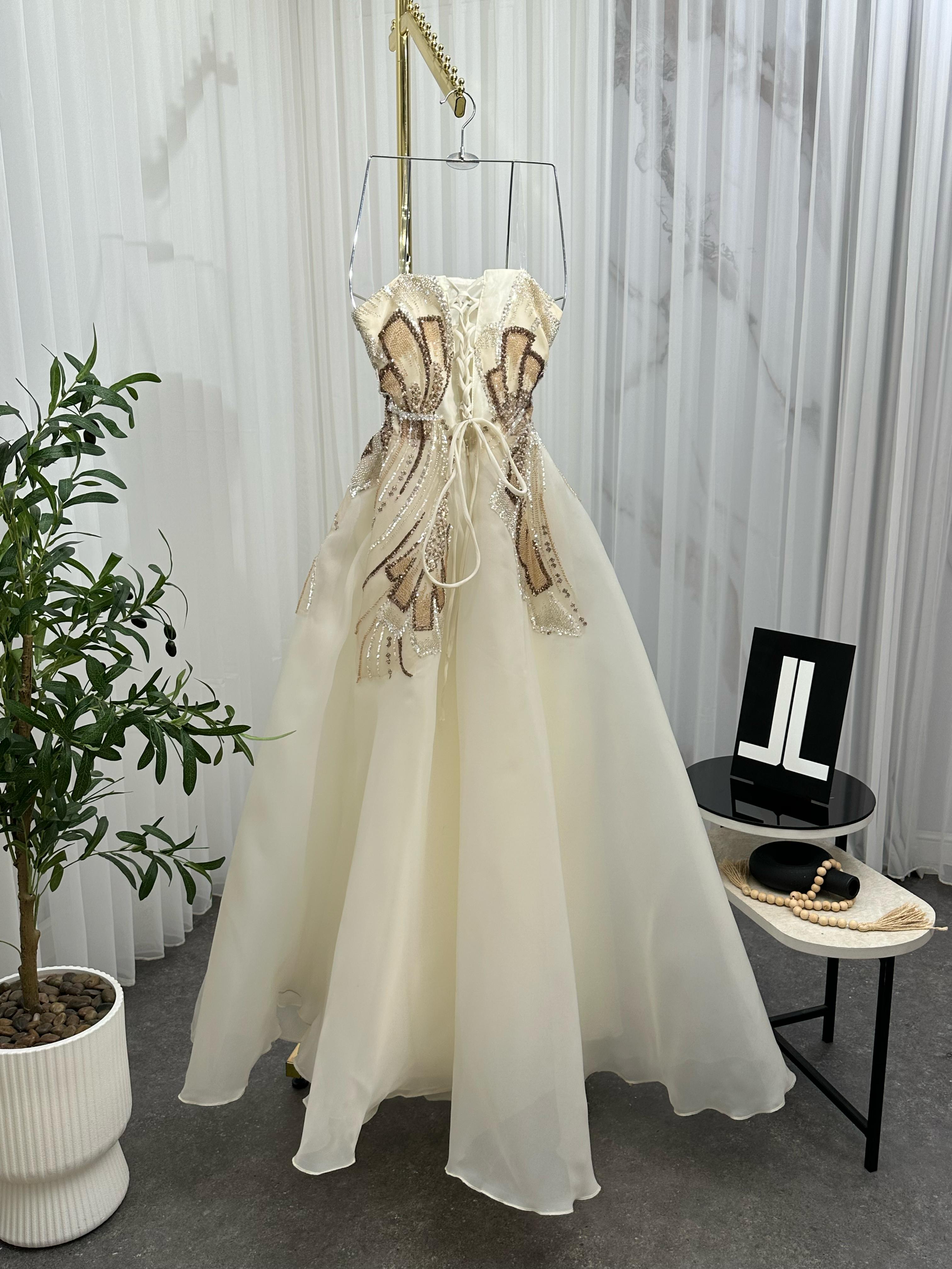 • القصّة: فستان طويل بانسيابية ناعمة وقصة ملكية أنيقة