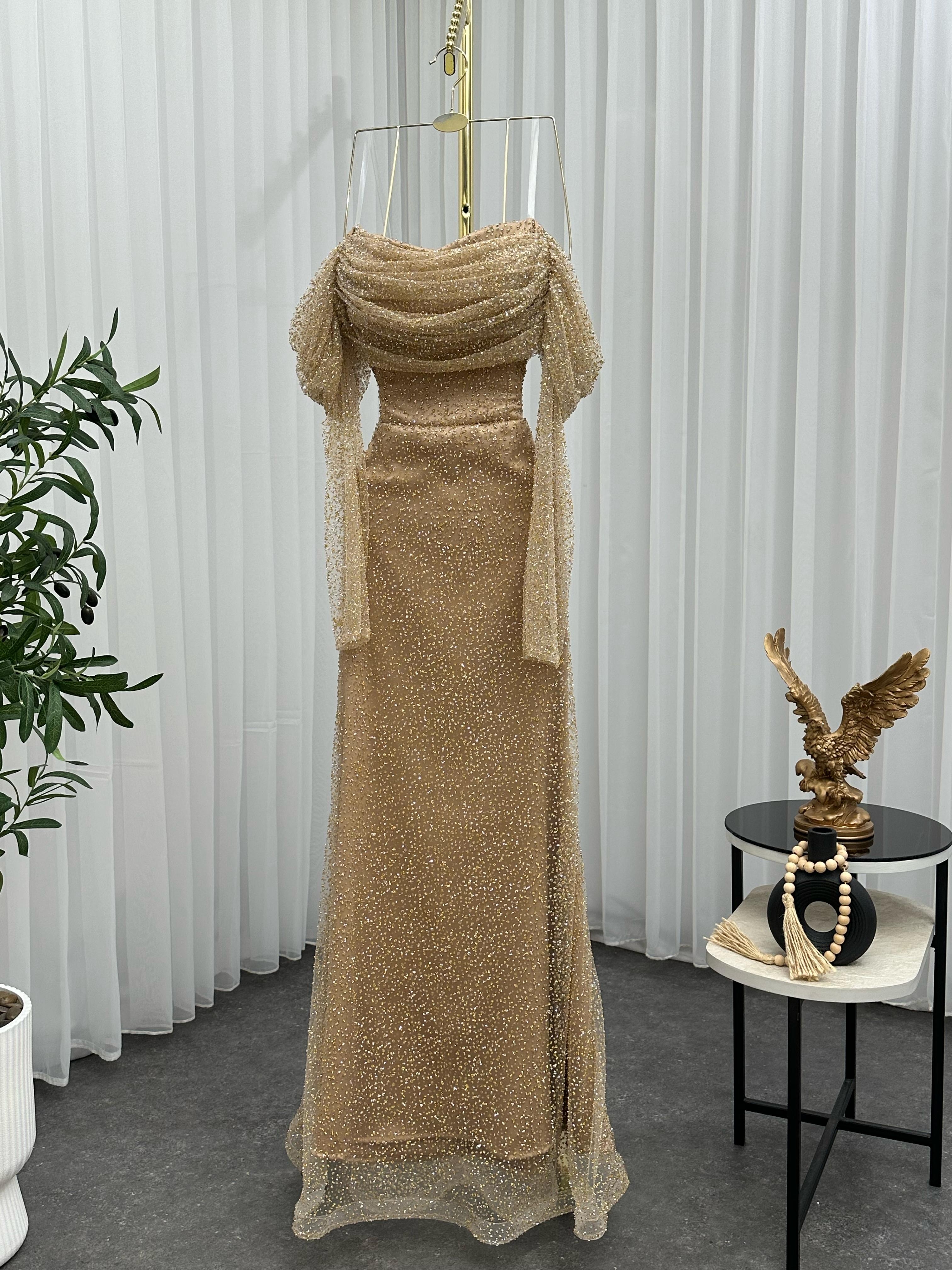 ✨ فستان الفخامة الذهبية يعكس مزيجًا من الفخامة والرُقي، حيث يتميز بتصميم ملوكي يزين حضوركِ في المناسبات الخاصة والاحتفالات الفاخرة.