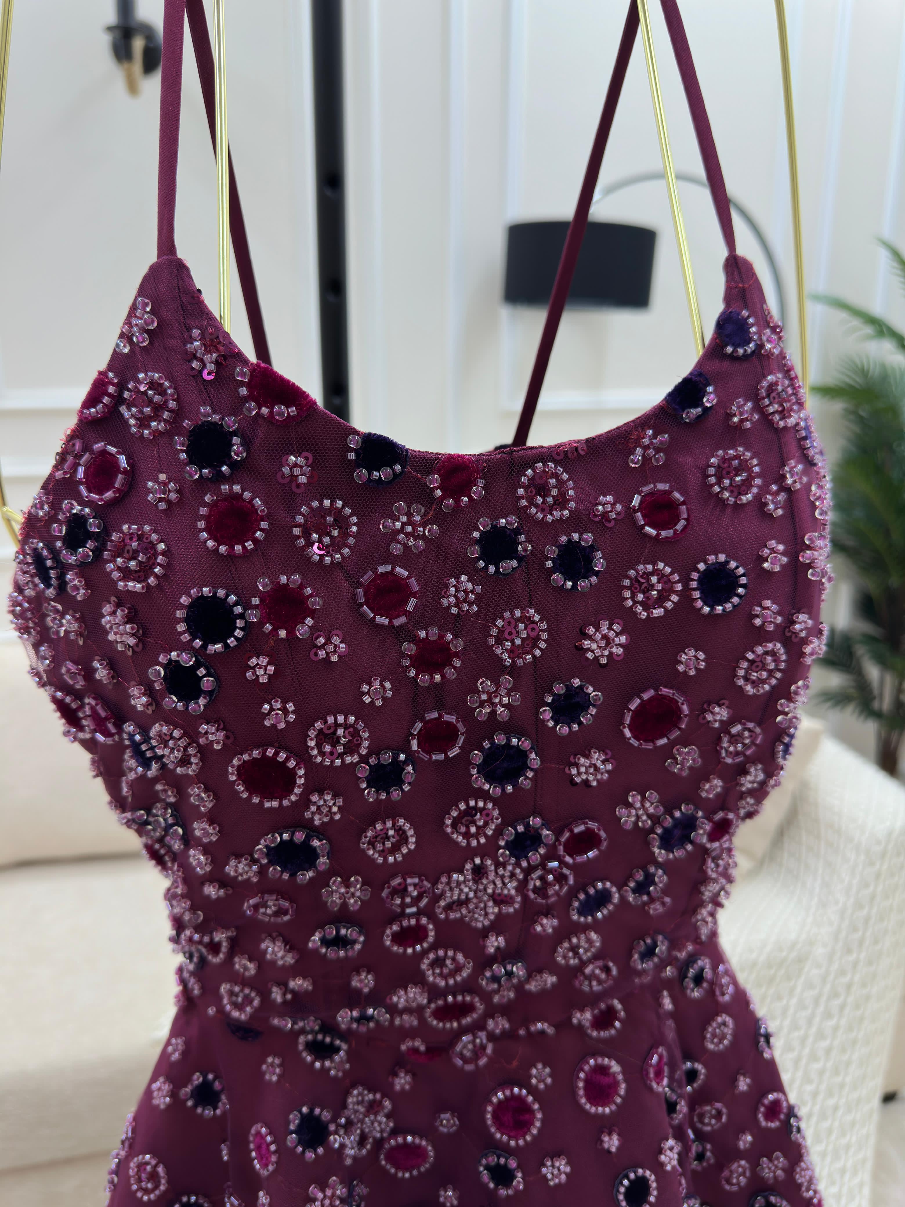 📦 التخزين: علّقي الفستان على شماعة مبطنة للحفاظ على شكل القصة وتجنب التجاعيد، ويفضل وضعه في كيس قماش لحمايته من الغبار.